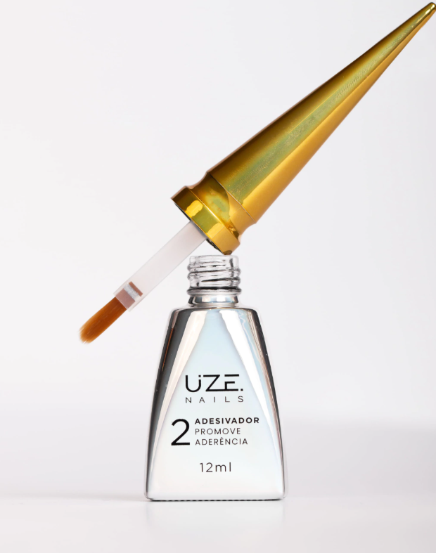 Após a aplicação do Prep Higienizador Uze Nails e do Primer Ácido Desidratador Uze Nails, aplique uma camada fina do Adesivador Uze Nails diretamente sobre a unha natural, utilizando o pincel do frasco e tomando cuidado para não encostar na cutícula. Aguarde a completa evaporação do produto antes de seguir para o próximo passo da preparação.