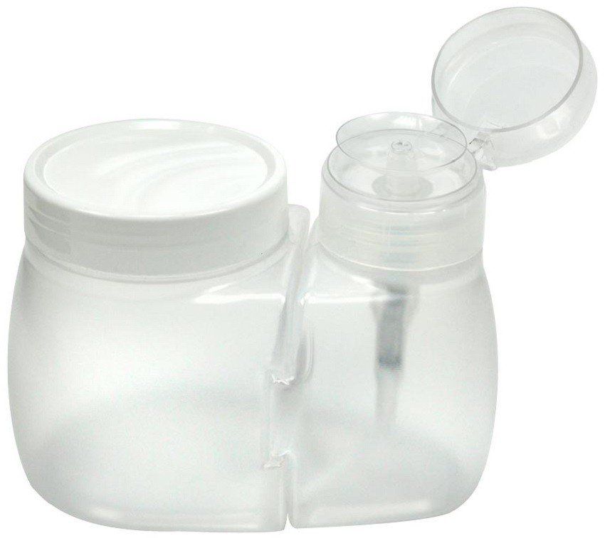 O Dosador de Acetona com Porta Algodão Transparente - Santa Clara é o verdadeiro 2 em 1, você tem 2 potes que se encaixam e se tornam em apenas 1, fazendo o conjunto perfeito para a acetona e o algodão.