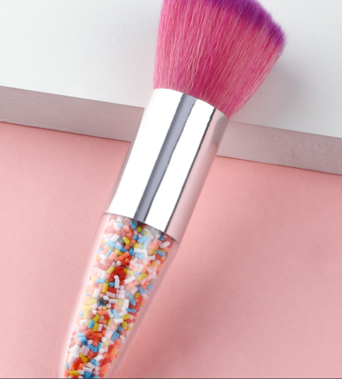 Pincel para retirada de excesso do pó das unhas, cabo compacto cromado. Pode haver variação de cores e marca dependendo do estoque.