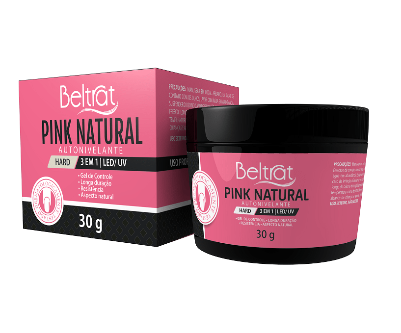 GEL PINK NATURAL HARD BELTRAT é um gel construtor que confere a resistência característica das unha de gel, é autonivelante, utilizado também para alongamento de unhas, unhas em gel decoradas e fibra de vidro.