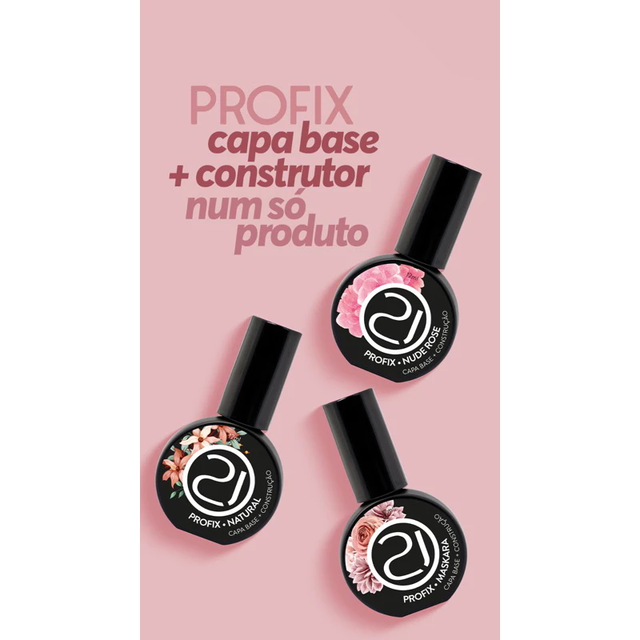 Pro Fix Nails 21 produto 3 em 1: Capa Base; Gel de Construção e Pincel. Molecular e otimizado que se adapta na lâmina ungeal e traz alta aderência, resistência máxima, garantia de curvatura C firme, estável e segura até em formatos mais longos.
