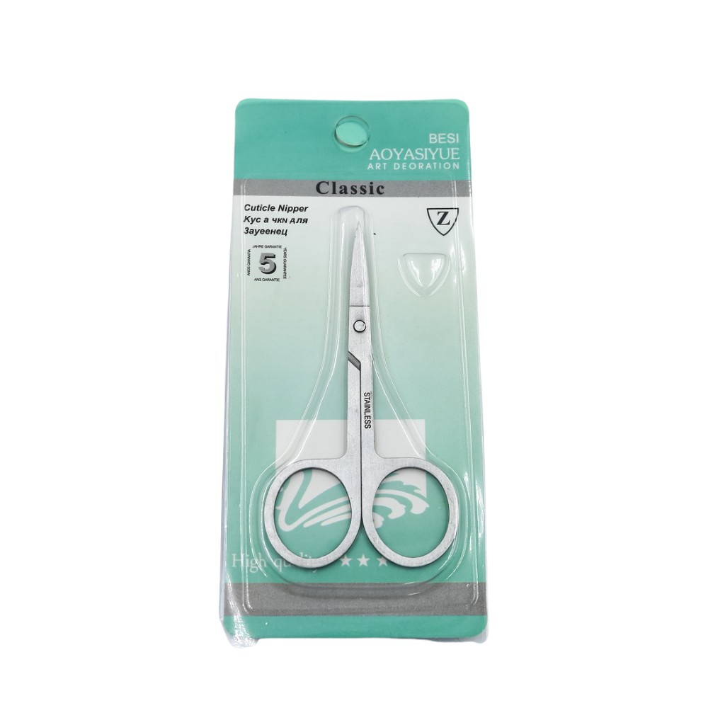 Tesoura de aço inox, para unhas, sobrancelhas etc com ponta reta, feita em aço inox, resistente e fácil de higienizar. Permite um corte preciso uso profissional ou doméstico.